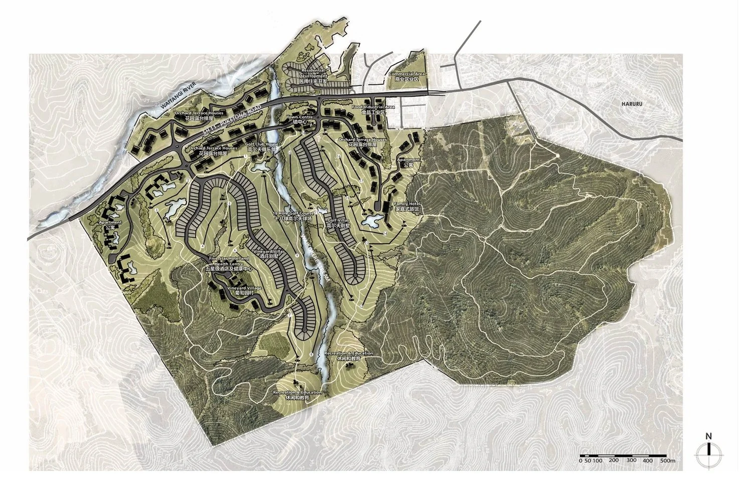 This masterplan was created by Graham Applin while leading the Beca Architects team, following a request from an overseas investor seeking to purchase 410 hectares of undeveloped land near the Bay of Islands.